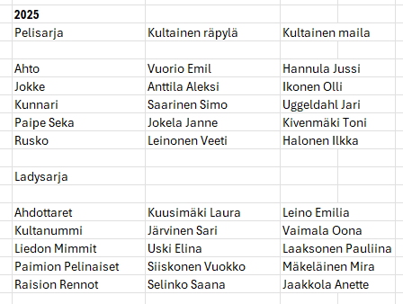 Joukkue tai joukkueenjohtaja valitsee joukkueestaan Kultainen Räpylä ja Kultainen Maila palkinnon saajat, jotka palkitaan mitaleilla kauden päätösristeilyllä.